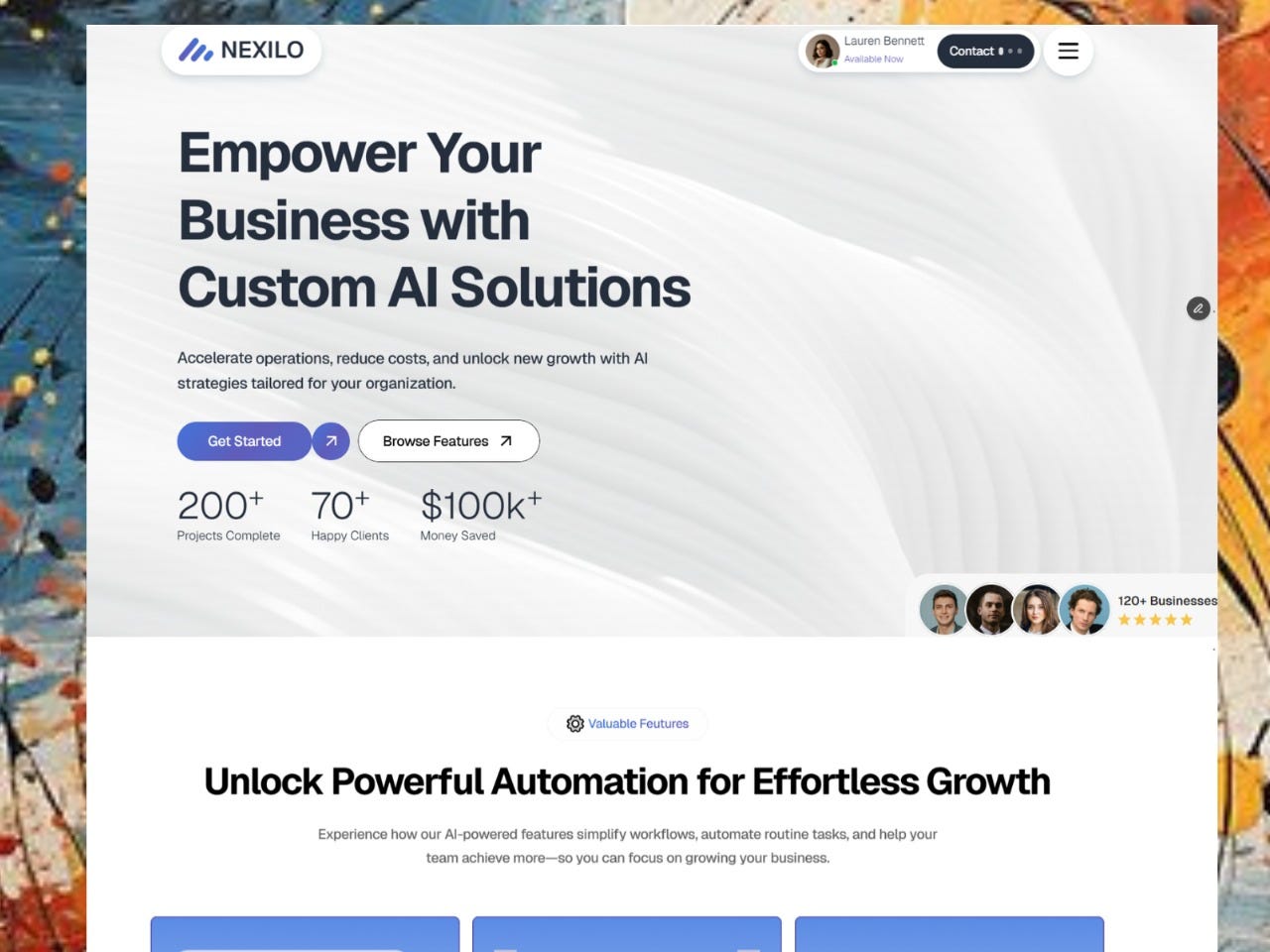 Nexilo is a modern AI SaaS template crafted for startups and tech teams—designed to showcase features, convert leads, and scale with your business. It’s the perfect blend of sleek aesthetics and pure, unadulterated functionality.